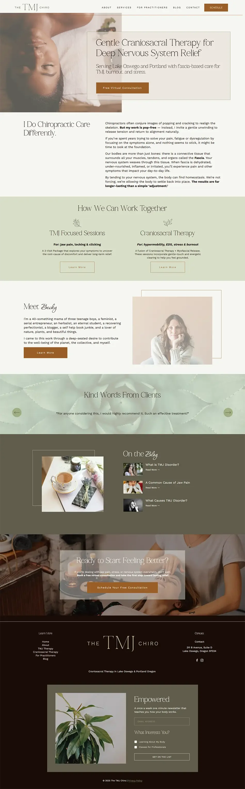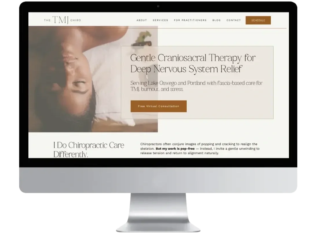 So we booked a Refresh VIP Day to clean up the design, simplify the navigation, improve SEO, and shift the messaging to focus more on craniosacral therapy.