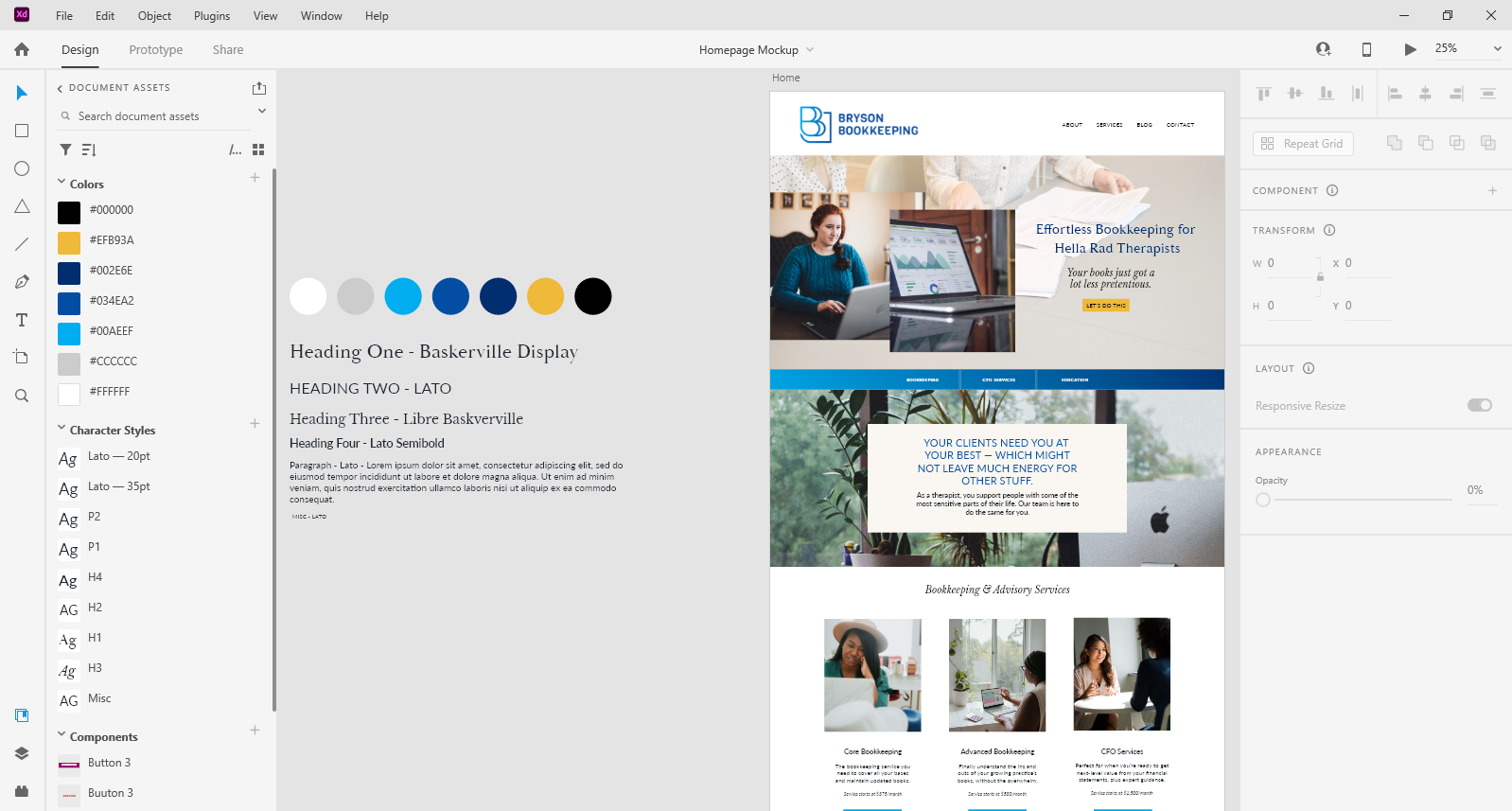I also created a mockup of the homepage and used Sara’s feedback to make some small adjustments before jumping into Squarespace to develop the entire site.