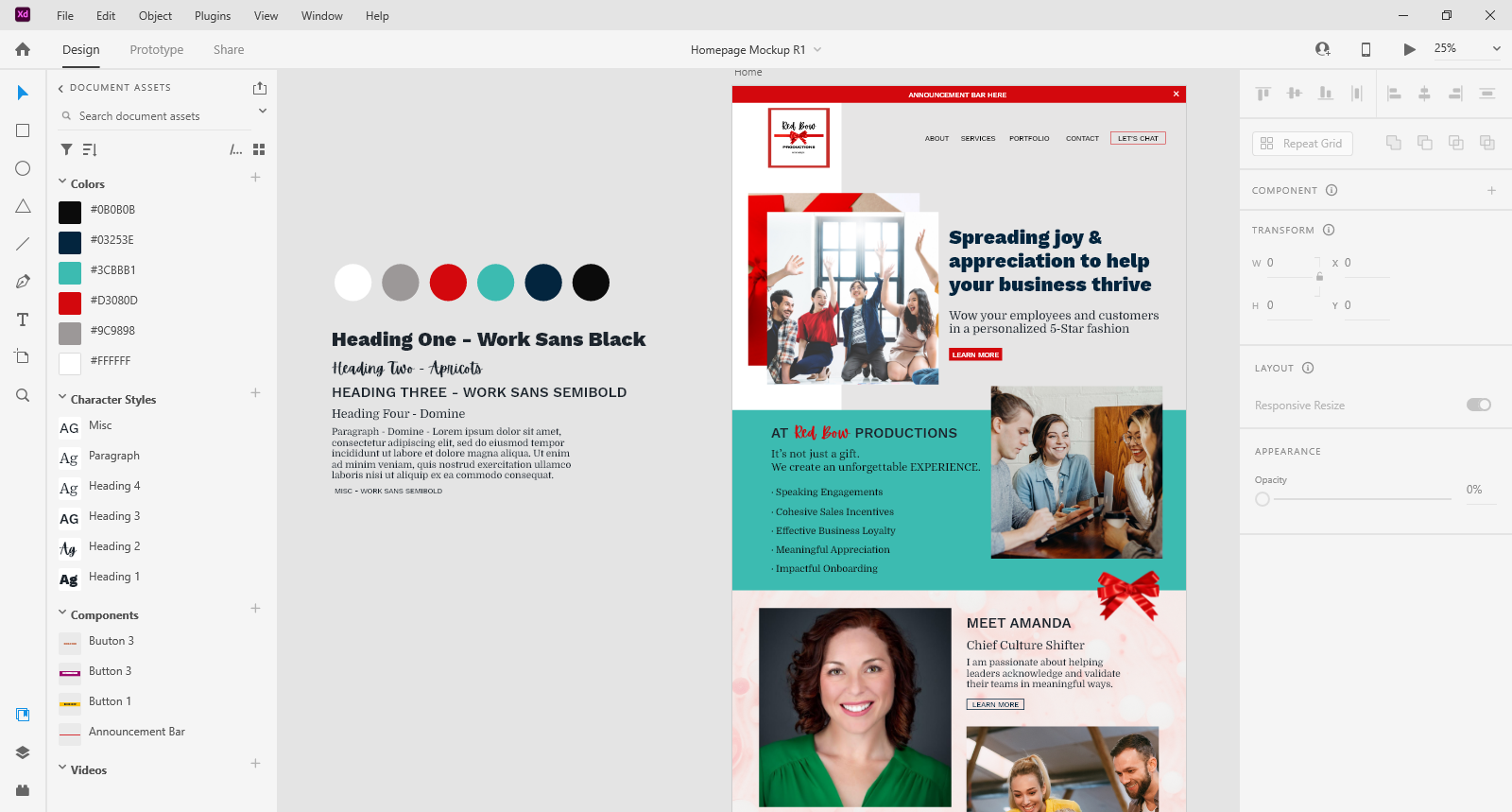 I also created a mockup of the homepage and used Amanda’s feedback to make some small adjustments before jumping into Squarespace to develop the entire site.