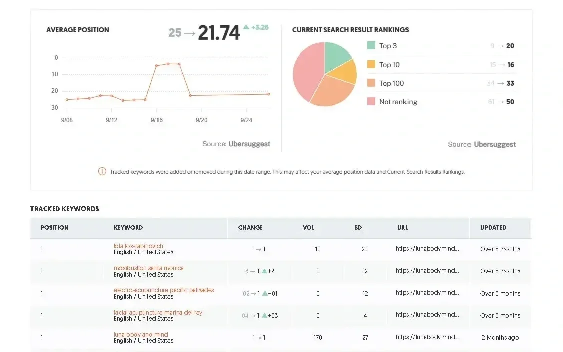 Since launch, Luna Body and Mind has seen impressive growth in both traffic and search performance — and more importantly, clients can now easily find what they’re looking for.