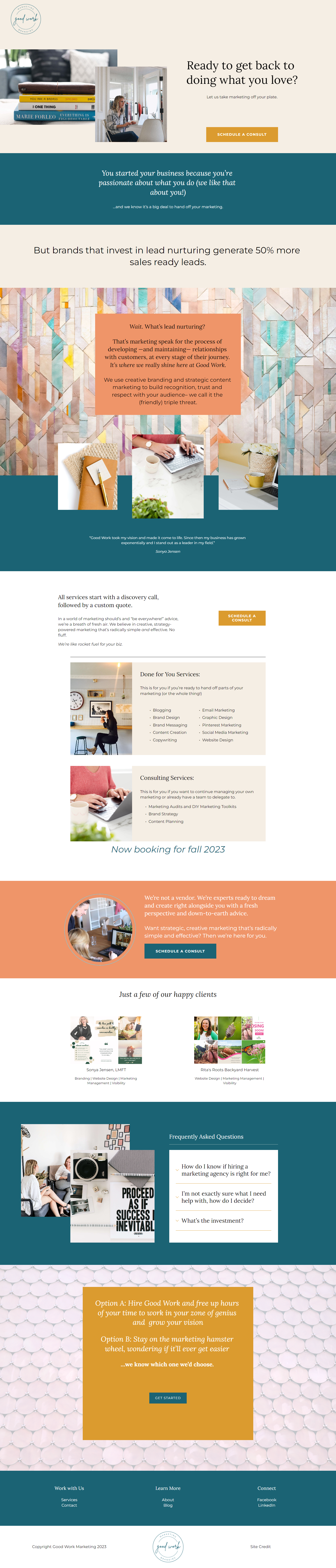 The final result was a stunning transformation of Good Work Marketing Co.'s online presence. Phyllis's brand was now accurately represented, and her website resonated with visitors.