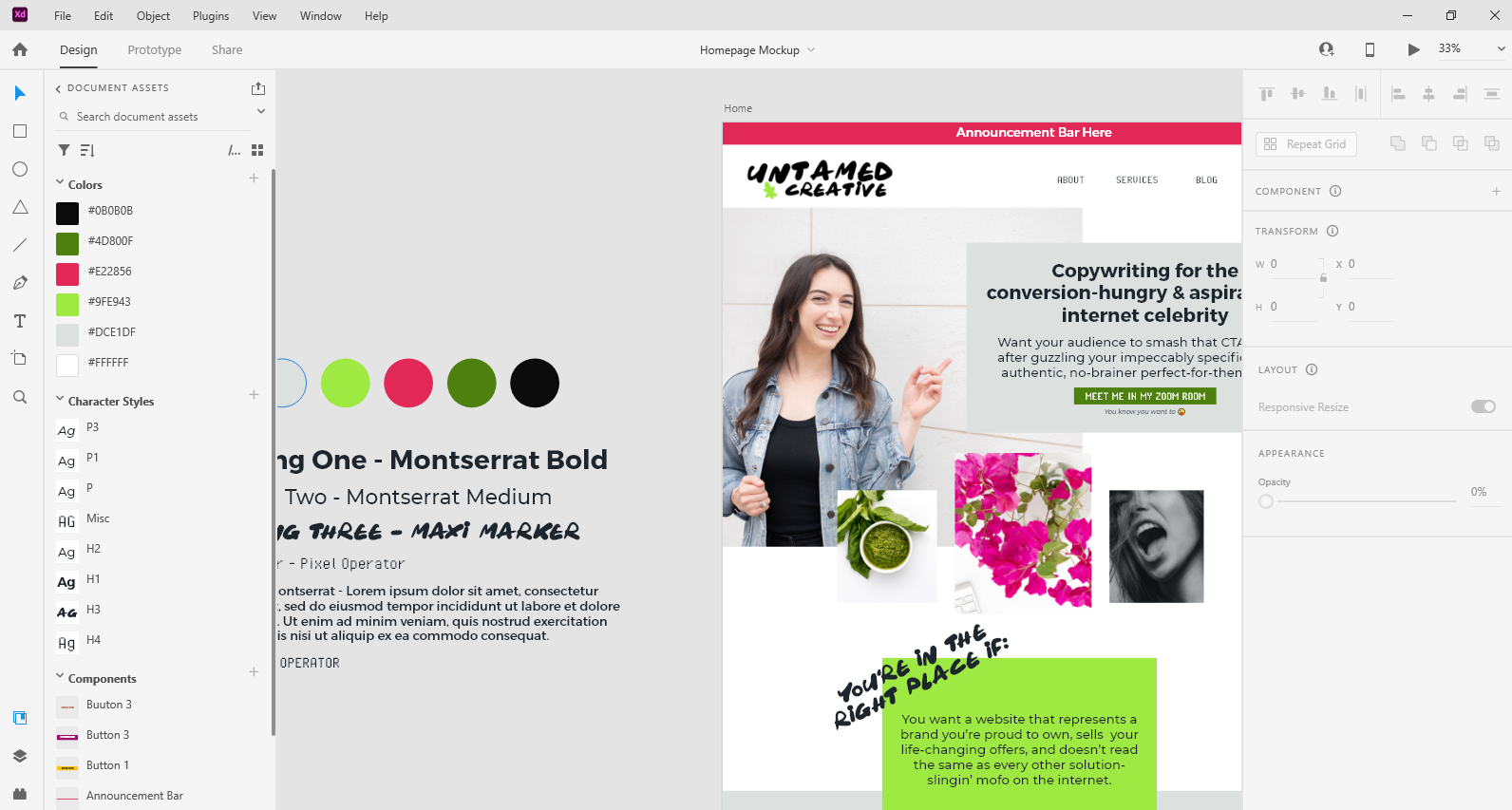 I also created a mockup of the homepage and used Jennifer’s feedback to make some small adjustments before jumping into Squarespace to develop the entire site.