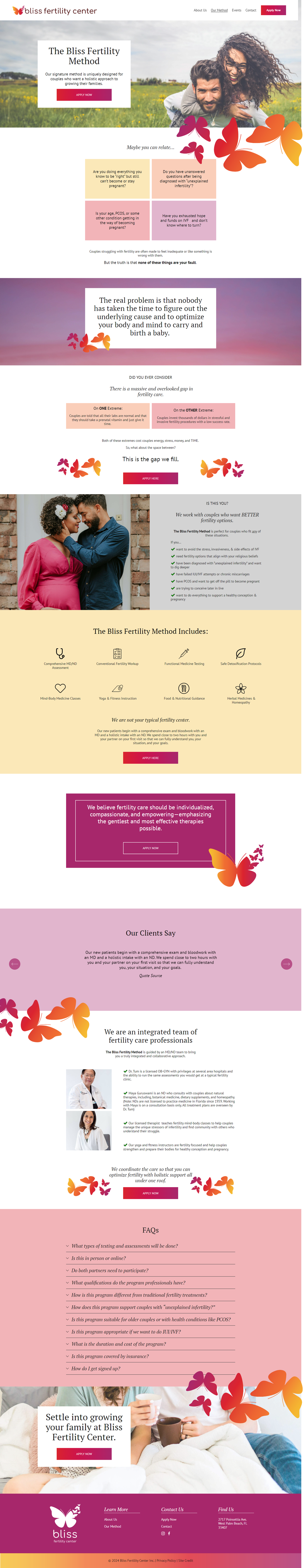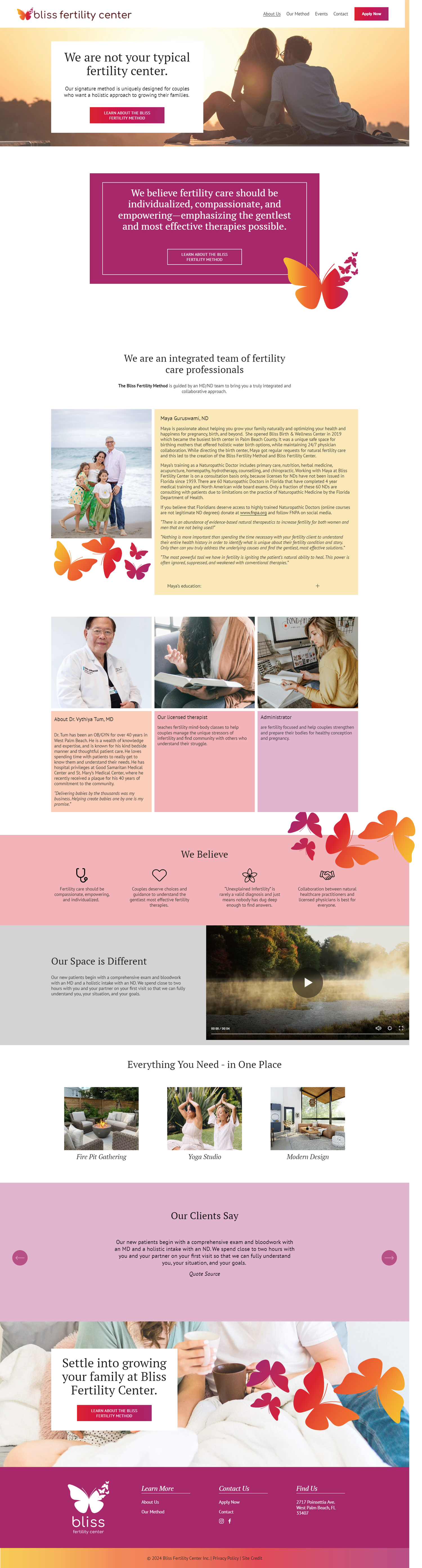 Bliss Fertility Center, led by Maya Guruswami, sought to create a new website that reflected their unique approach to fertility care as she started this new clinic. Her previous website, created for a birth center, did not fully capture Maya's design preferences. Maya desired a website that resonated with couples aged 28-42 who were seeking alternatives to traditional fertility treatments like IVF and IUI. Maya was “needing a new website and looking for a web designer who would work with my design preferences. I want the design and colors to feel just right!”