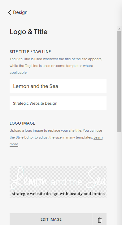 The first simple trick you want to do it to make sure your website title and tagline are correct. You can do that under Design > Logo & Title. Make sure that your Site Title / Tag Line up-to-date with your business. Even if you’re using a Logo Image, you want these fields filled in.