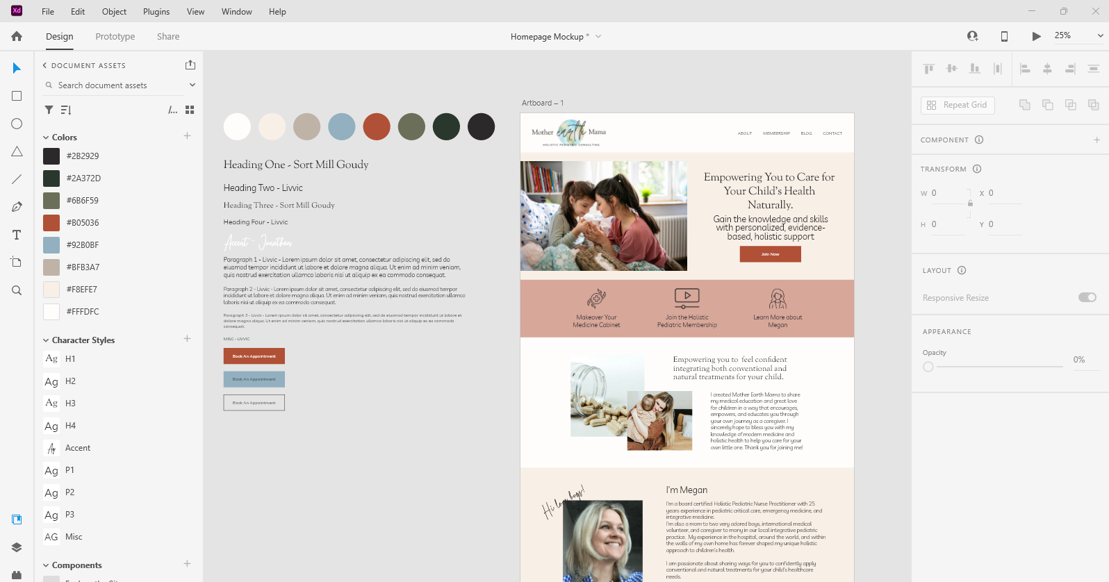 We started with a logo she already loved and built out the rest of the brand visuals from there — a grounded, earthy palette with blue and green tones that reflected her values and target audience. We sourced images and icons that supported the feel of a nurturing, expert-led space for holistic pediatric care.