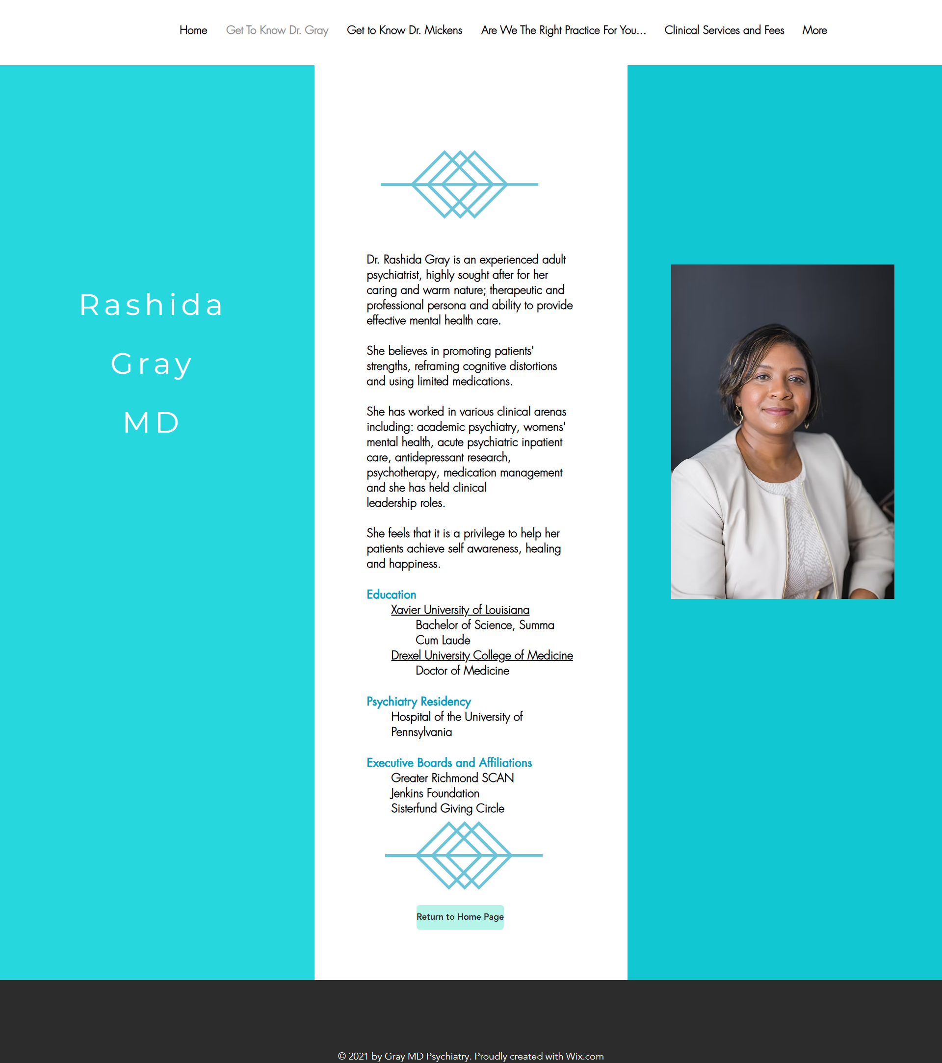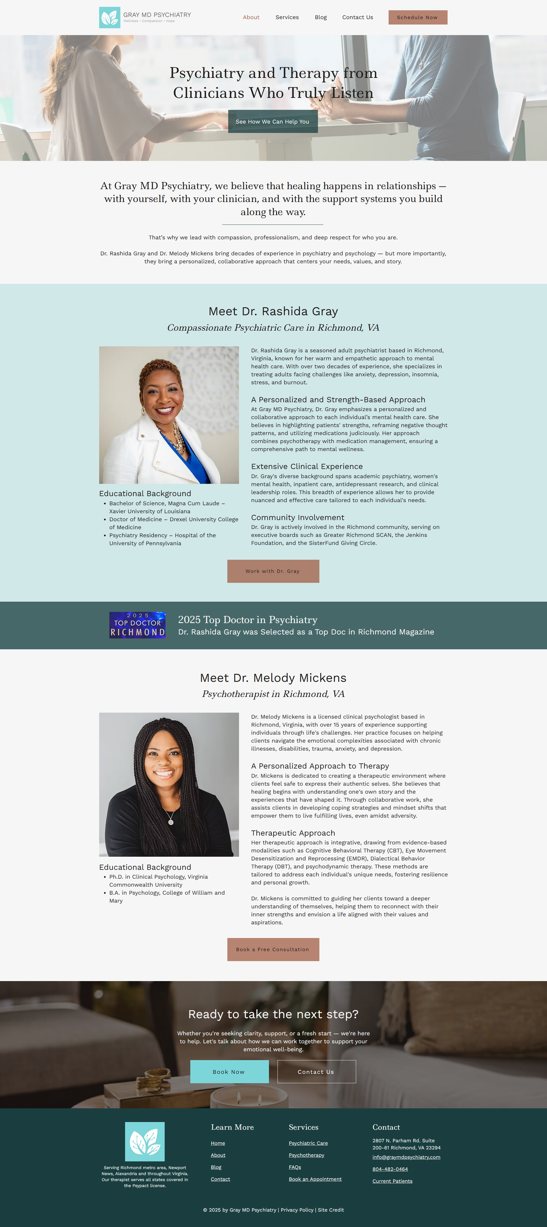 Dr. Rashida Gray of Gray MD Psychiatry offers integrative psychiatry, talk therapy, CBT, EMDR, and medication management to individuals struggling with OCD, anxiety, depression, and more. While her work was deeply impactful, her website wasn’t reflecting the professionalism or scope of her practice.