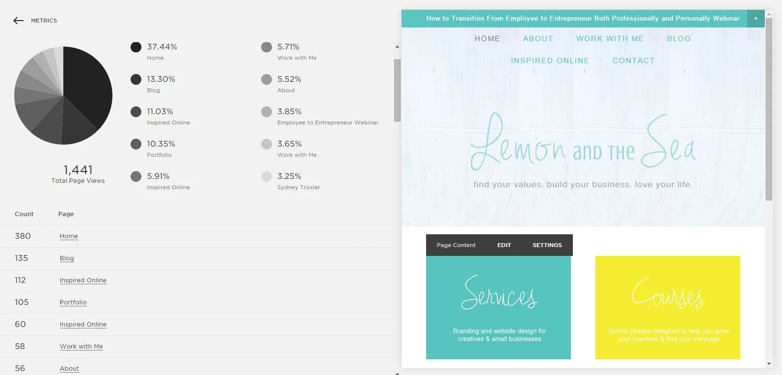 My most visited page this month was my home page, with 37%. My top post was a tie between my August Traffic & Income Report and my post about the website I created for Sydney Troxler.