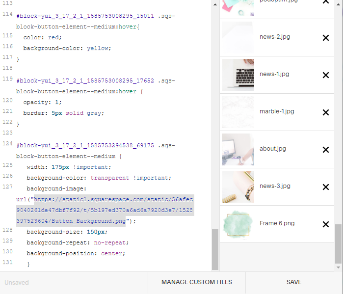4. Click on the file to get the URL (it will appear in the Custom CSS code). Make sure to delete the code from the Custom CSS text if it isn’t where it needs to be.