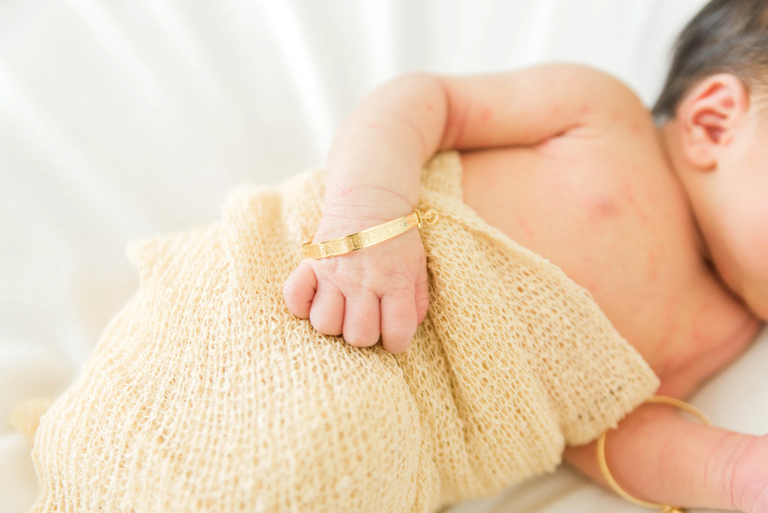 Our photographer had a studio in her home, so we were able to go there (after Daniel’s first pediatrician visit) and use her backdrops and accessories. It was really special to also get to include some of the traditional gold jewelry that is given to babies in Chinese culture.